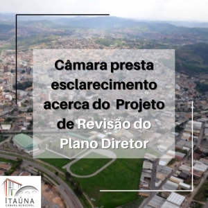 O Projeto de Revisão do Plano Diretor foi apresentado pelo Prefeito Municipal em 17/12/2019. A Revisão do Plano diretor é obrigatória e deve ser realizada a cada 10 anos. Atualmente, o projeto tramita por esta casa Legislativa por quase 02 anos, prazo demasiadamente longo.