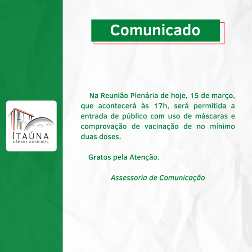Comunicado da Câmara Municipal: Presença na Reunião Plenária