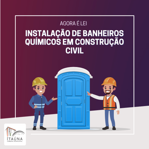 Foi Promulgada pelo Presidente da Câmara, vereador Alexandre Campos a Lei 5810 dispondo sobre a obrigatoriedade de instalação de sanitários químicos em obras de construção civil no Município de Itaúna. De autoria do vereador Aristides Ribeiro, a Lei estabelece a responsabilidade às construtoras e/ou responsáveis por obras de construção civil superiores a 1000 m², públicas ou particulares, obrigadas a instalar nos ambientes de trabalho, sanitários químicos suficientes, ou a disponibilizar instalações sanitárias equivalentes, nos canteiros de obras onde houver trabalhadores ativos.
