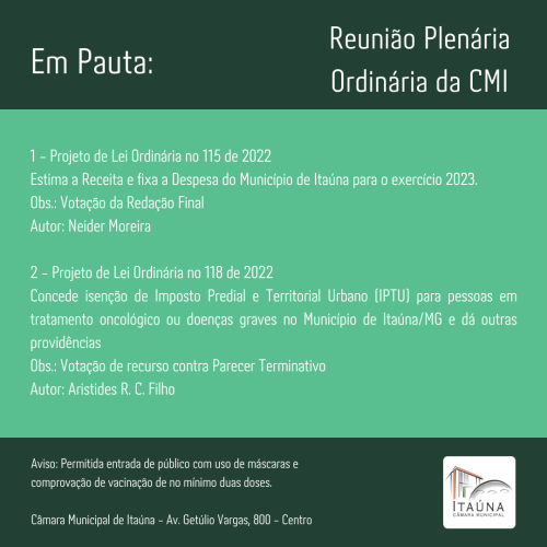 - Câmara Municipal realiza 392ª Reunião Ordinária com aprovação de importantes projetos para Itaúna